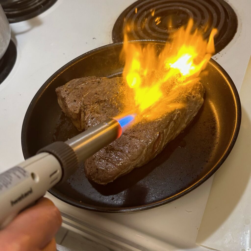 それはIWATANIさんのガスバーナー♡低温調理器の仕上げ用に活躍を期待して。