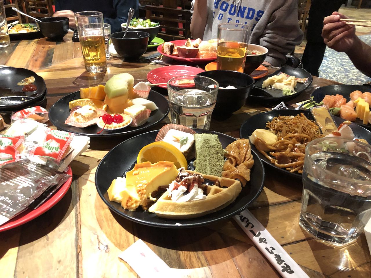 大人数で行くとテーブルがこんなに山盛りになります。。うちらだけだったかも。。