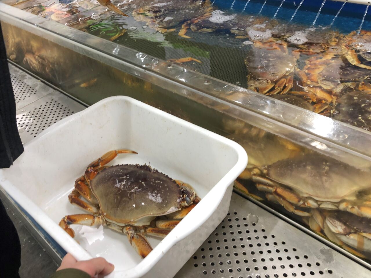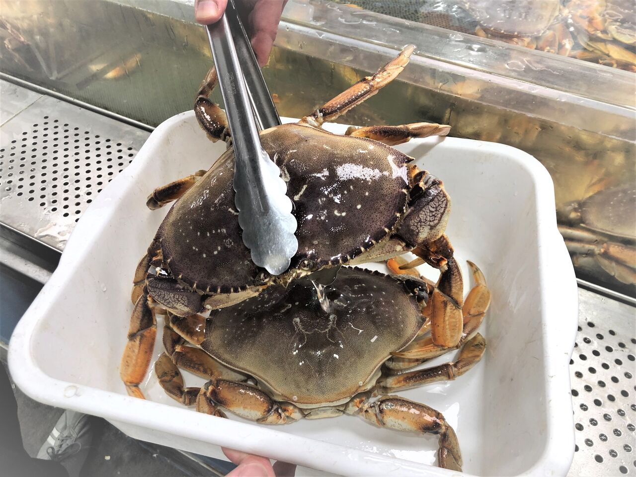 ハサミが2本ついているか、活きの良さ等吟味しながら選んで重さを図ってもらったら、