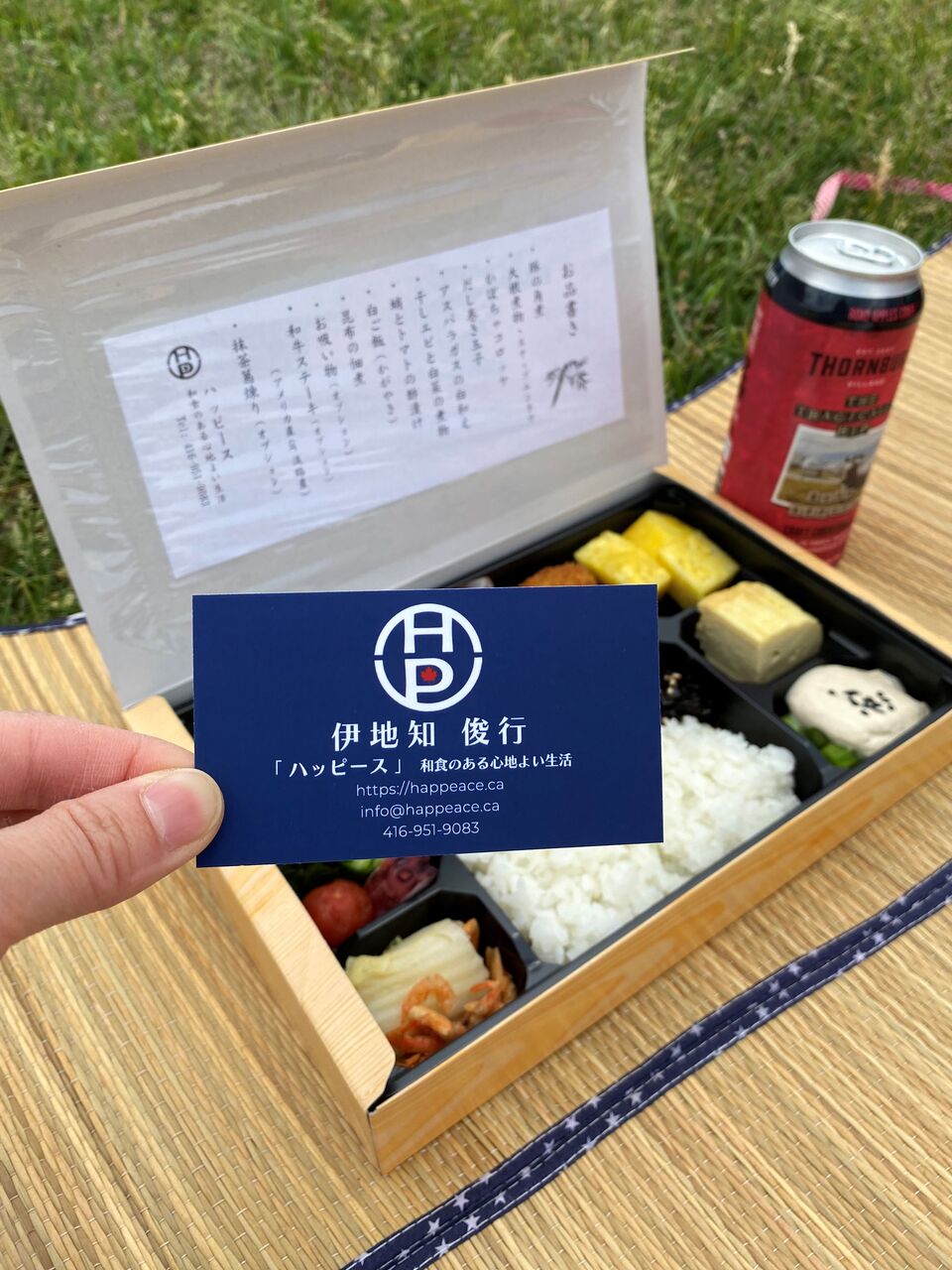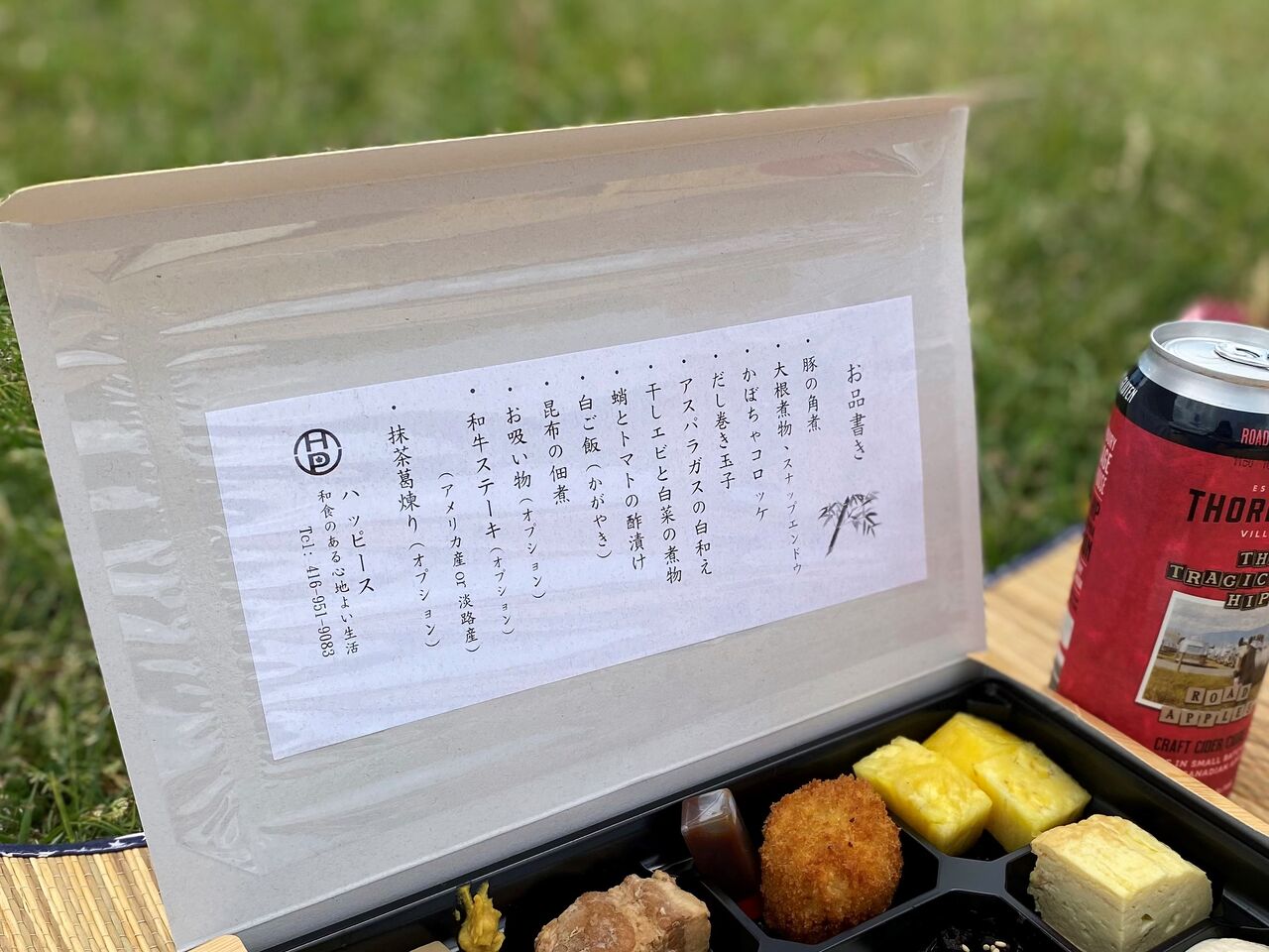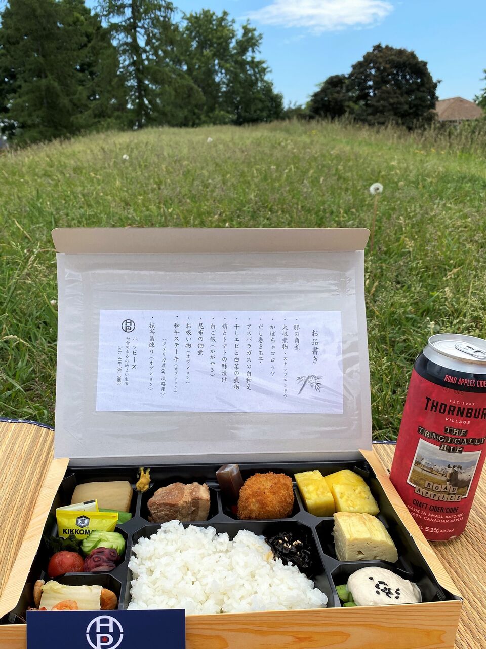 現在、週末に販売されている和食御膳弁当、ピックアップついでに近くの広場でピクニックすることにしました。この季節は何をするでも外が気持ちいいんです♪