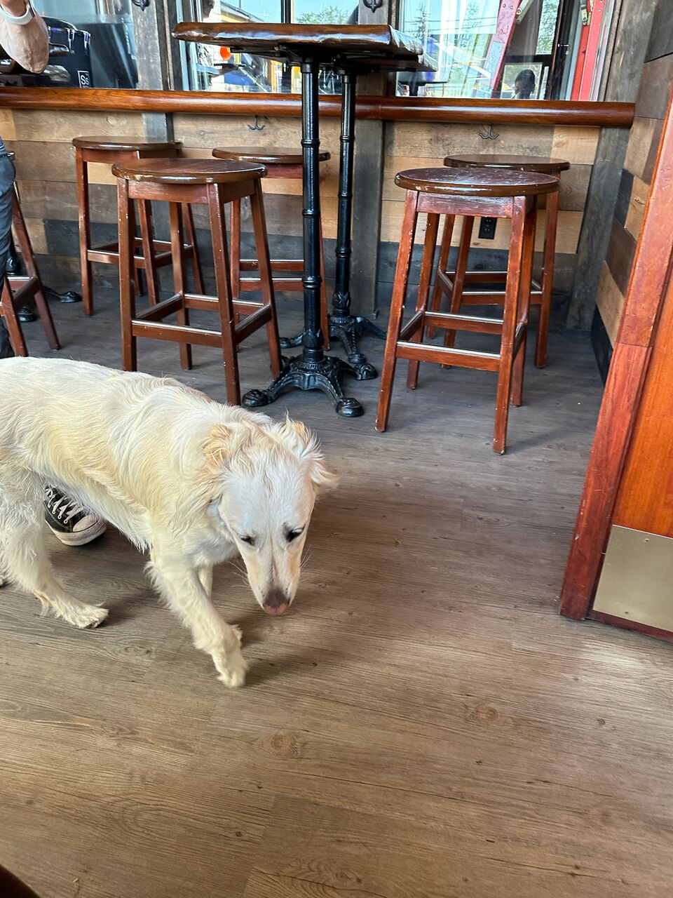 オーナーさんのワンちゃんだそうで店内パティオをくまなく回りながら他のワンちゃんと喧嘩することもなく落ち着いて仕事をこなしていました。