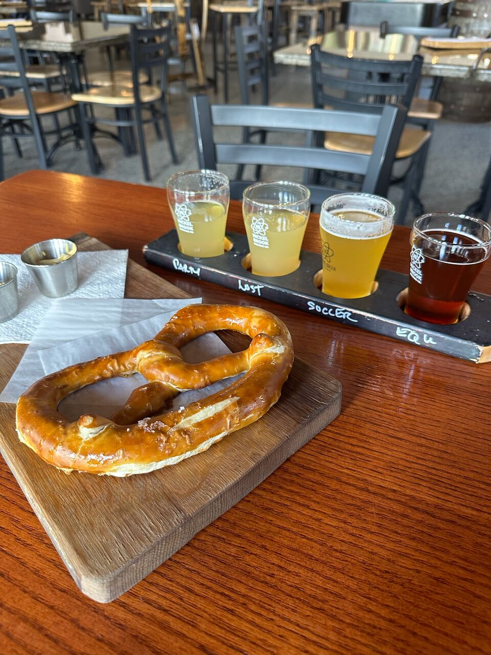 ビールとの相性100%プレッツェルやフラットブレッドなど軽食もいただけるので、ランチを兼ねて訪れるのがベストかもしれません。この日は時間がなく30分間のリミットがあったのですが試飲もつまみもしっかり取っていましたね笑